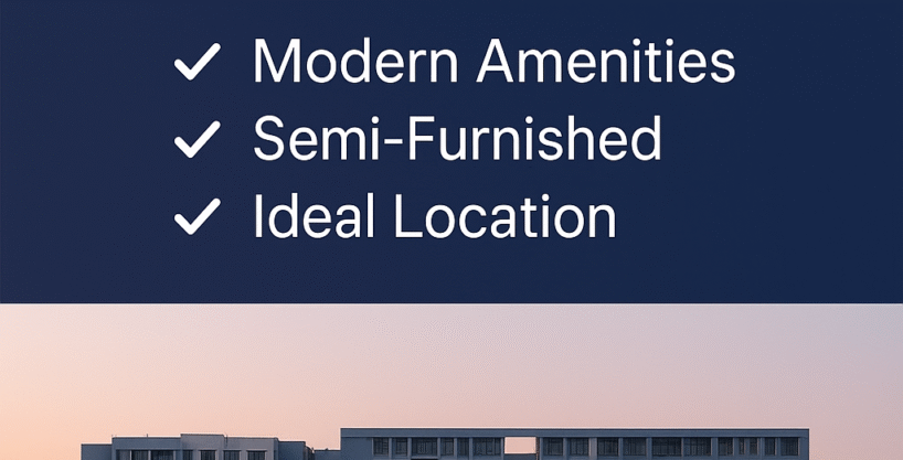 Semi‑furnished: basic furniture/appliances provided (beds/wardrobes/kitchen fittings)