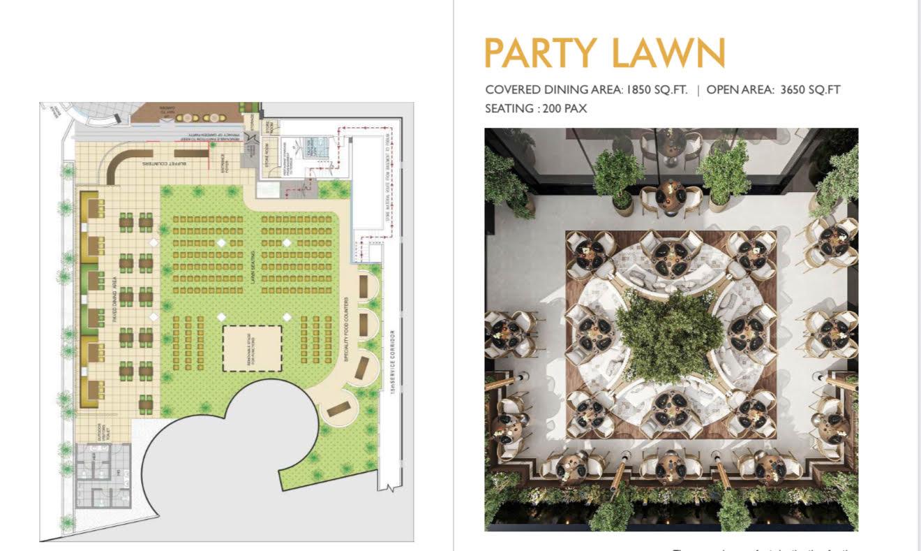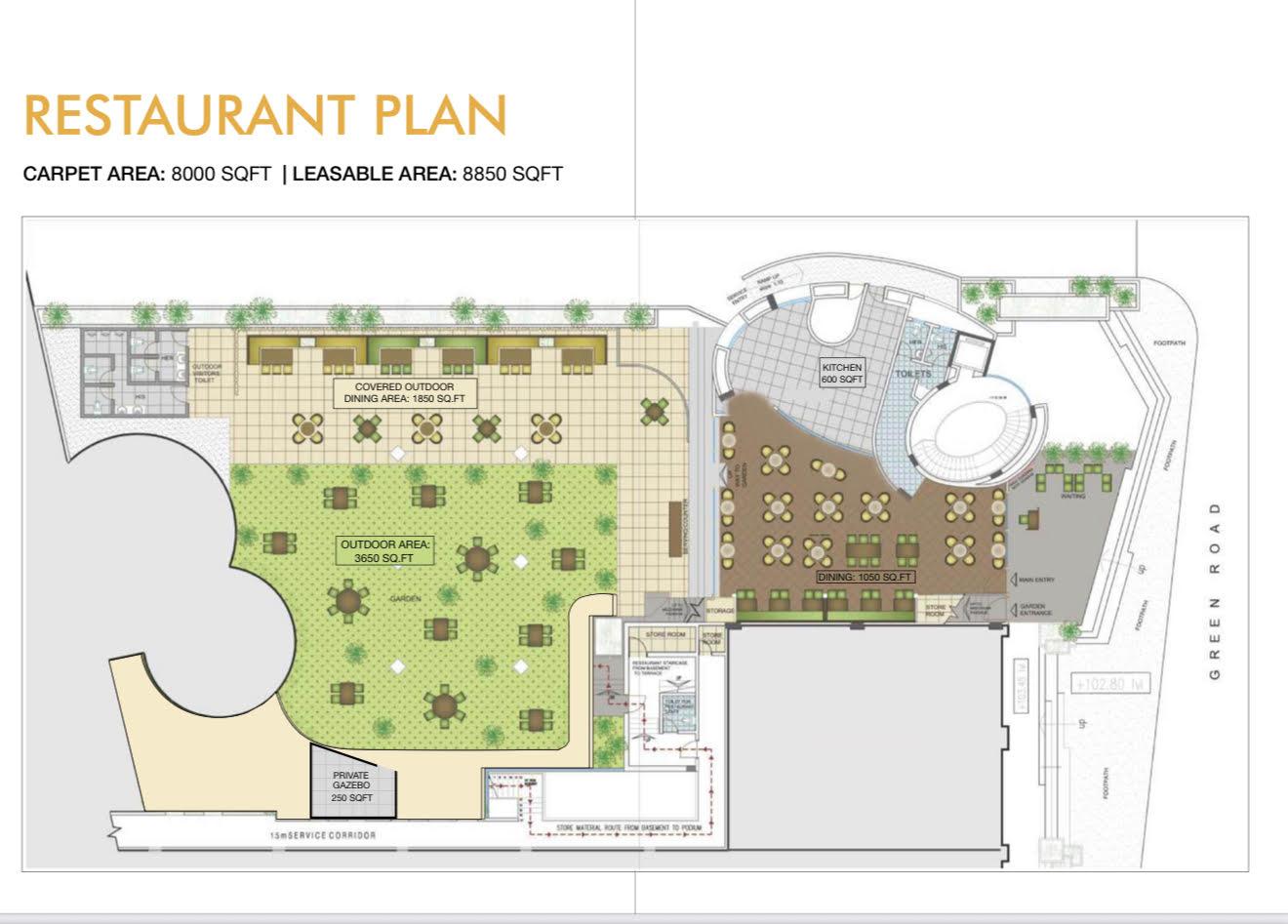 • Large Carpet Area: 8,000 sq ft (4,350 sq ft covered; 3,650 sq ft outdoor) within a premium commercial development